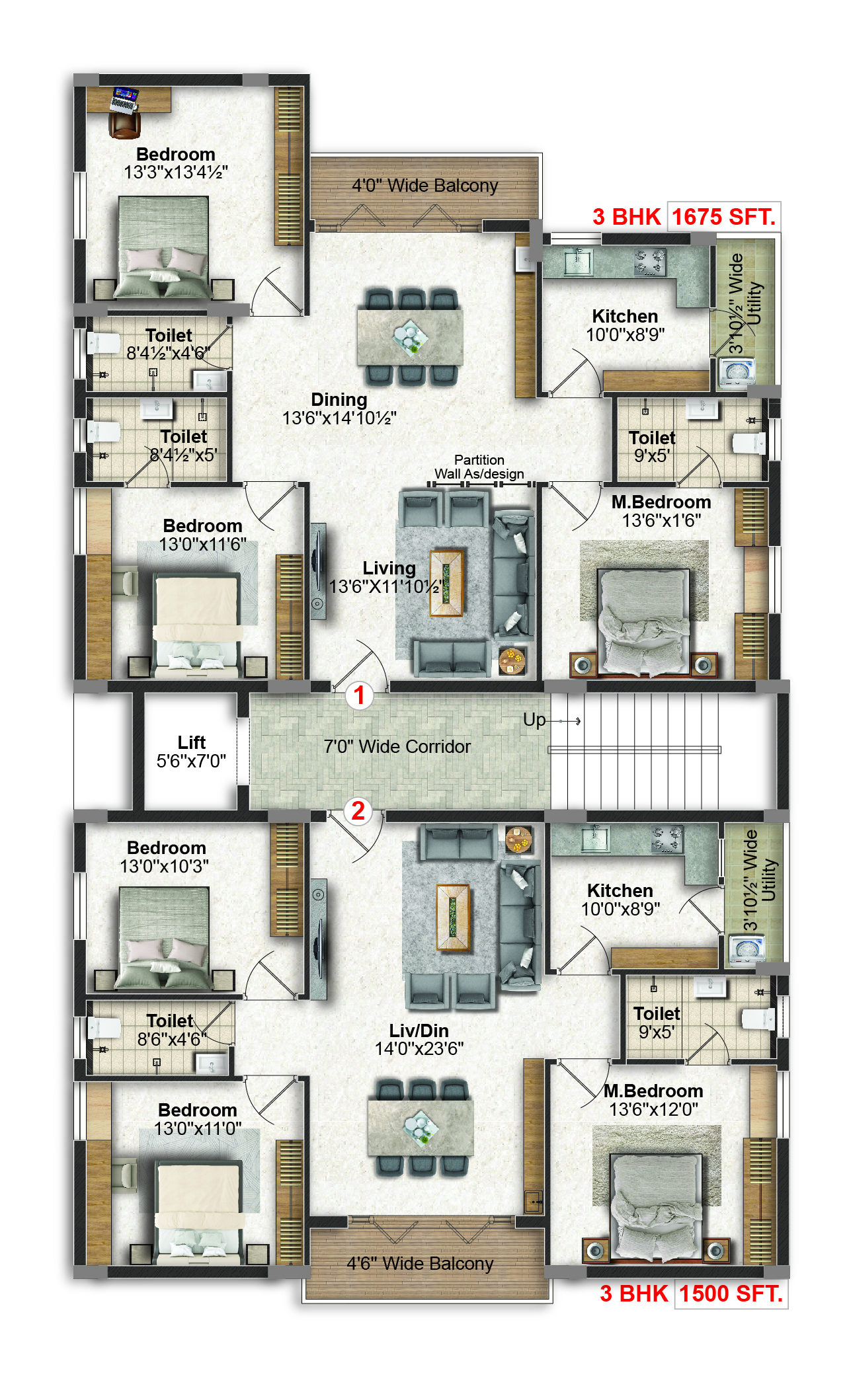 With the independence of apartment units that are well socially-distanced between each project1 with no common walls- Laxmi Ram Trinetra Presents you 3 BHK (1500 sft and 1675 sft) homes, where luxury can be all yours for a lifetime.